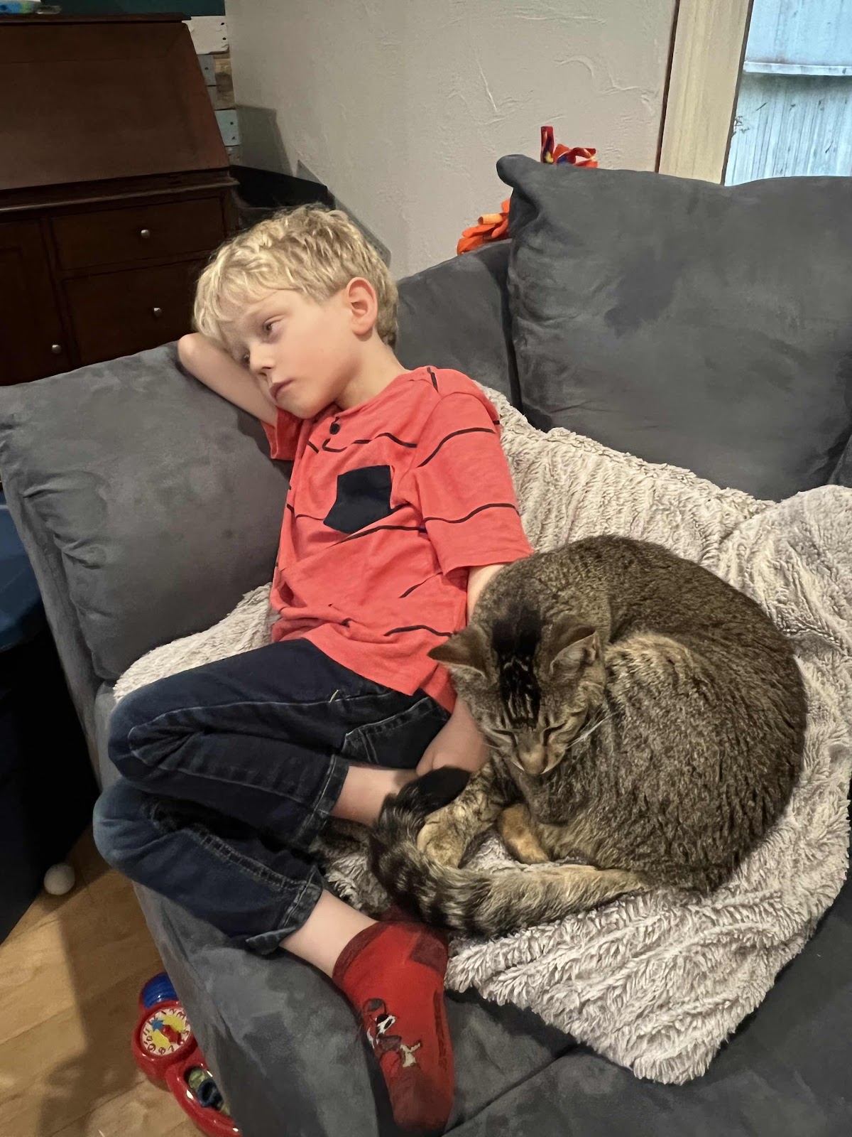 You know it’s a long day at school when you fall asleep in the car. I don’t remember the last time he did that! And Gabe want too far behind him. Apparently it was a long week.