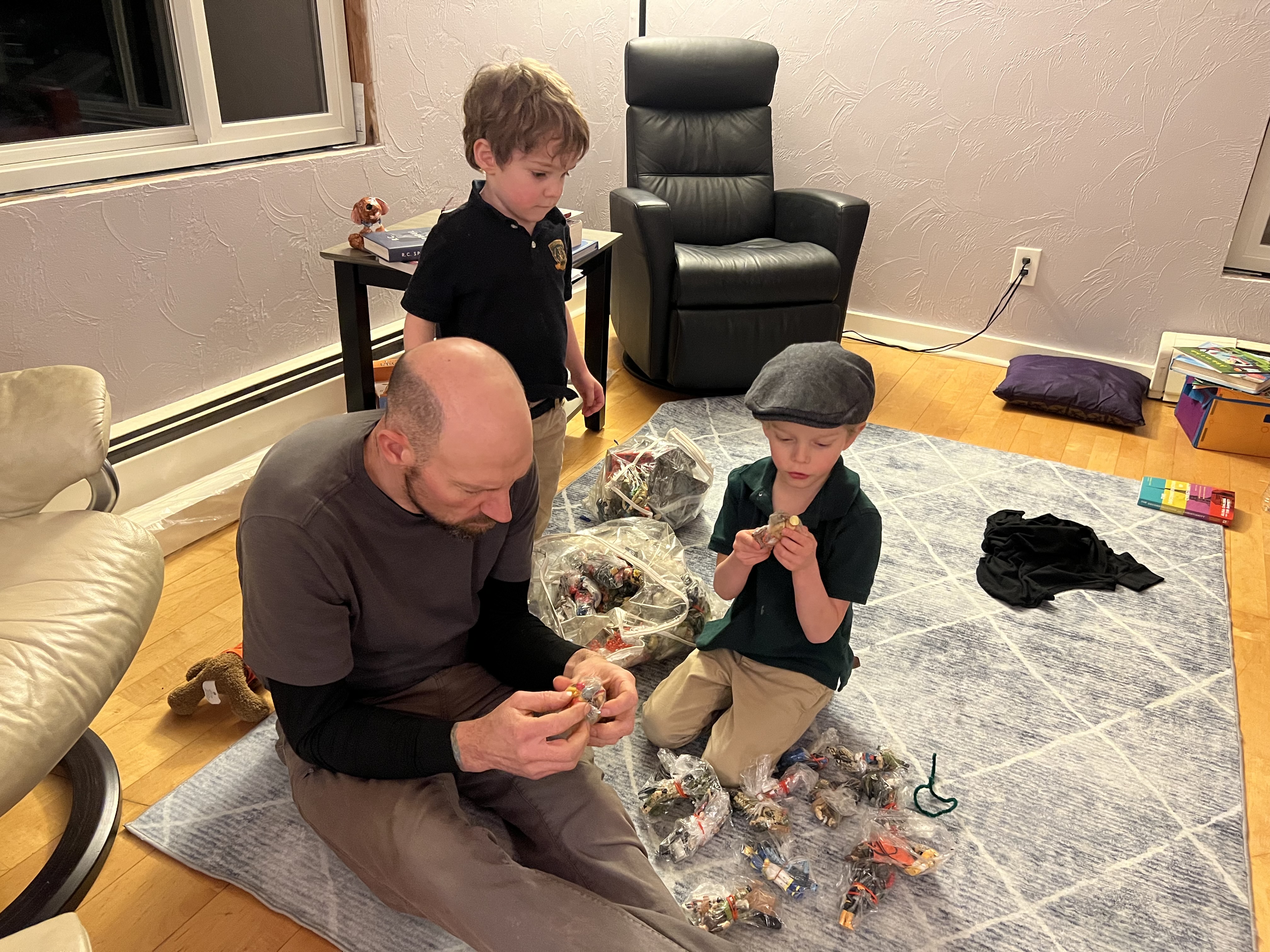 Pat brought back a bunch of his GI Joes from his parents house. All three of them were entirely too excited about this.
